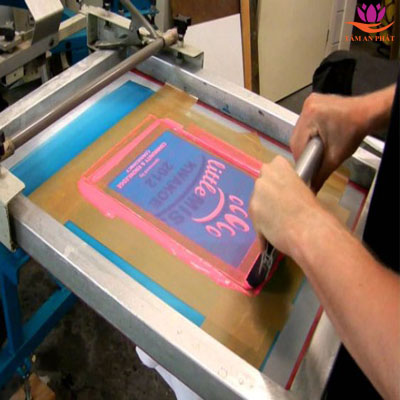 + Lúc này ta kéo mực in lụa xuống vật liệu cần in, lặp lại tương tự với các màu khác