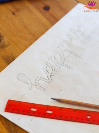 Bước 1: Dùng thước và bút chì vẽ lên giấy A3 chữ theo nhu cầu mình muốn. Thiết kế chữ có đẹp hay không do sự khéo tay và thẫm mỹ của bạn.