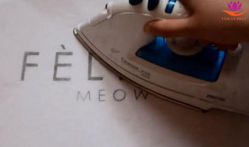 Bước 5: Để màu bám chặt trên bề mặt vải hơn, bạn đặt tờ giấy mỏng lên hình vừa in và dùng bàn là ở nhiệt 150 - 160 ºC để chữu bám dính tốt trên bề mặt vải và màu mực được bền hơn trên áo thun.