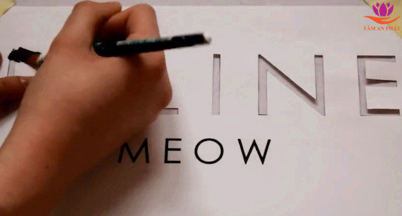 Bước 3: Dùng bút vẽ Artline tô lên phần khuôn chữ đã cắt trước đó. Lúc này bạn đã thấy việc cố định bằng keo là quan trọng và hiệu quả như thế nào, nếu bản in lớn bạn nên dùng thêm keo 2 mặt dán cố định để khuôn không bị lệch trong lúc bạn vẽ.