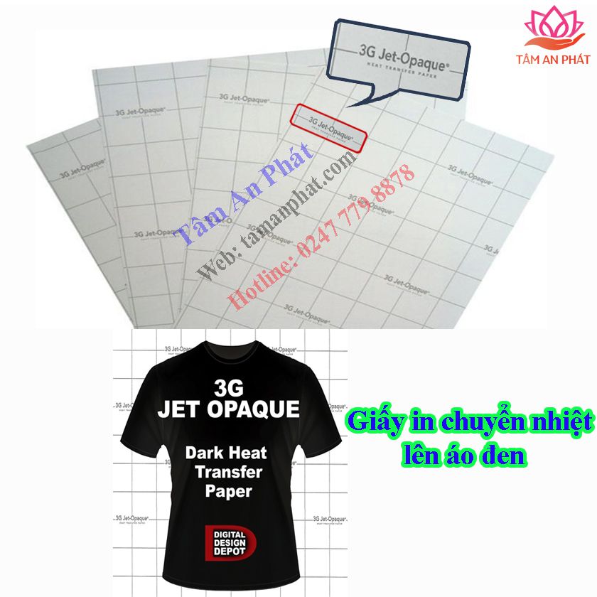 Giấy in chuyển nhiệt lên áo thun tối màu: giấy in áo tối màu Hàn Quốc Inkjet Heat Transfer Paper, giấy in áo tối màu Transmax, giấy in áo tối màu 3G Jet.